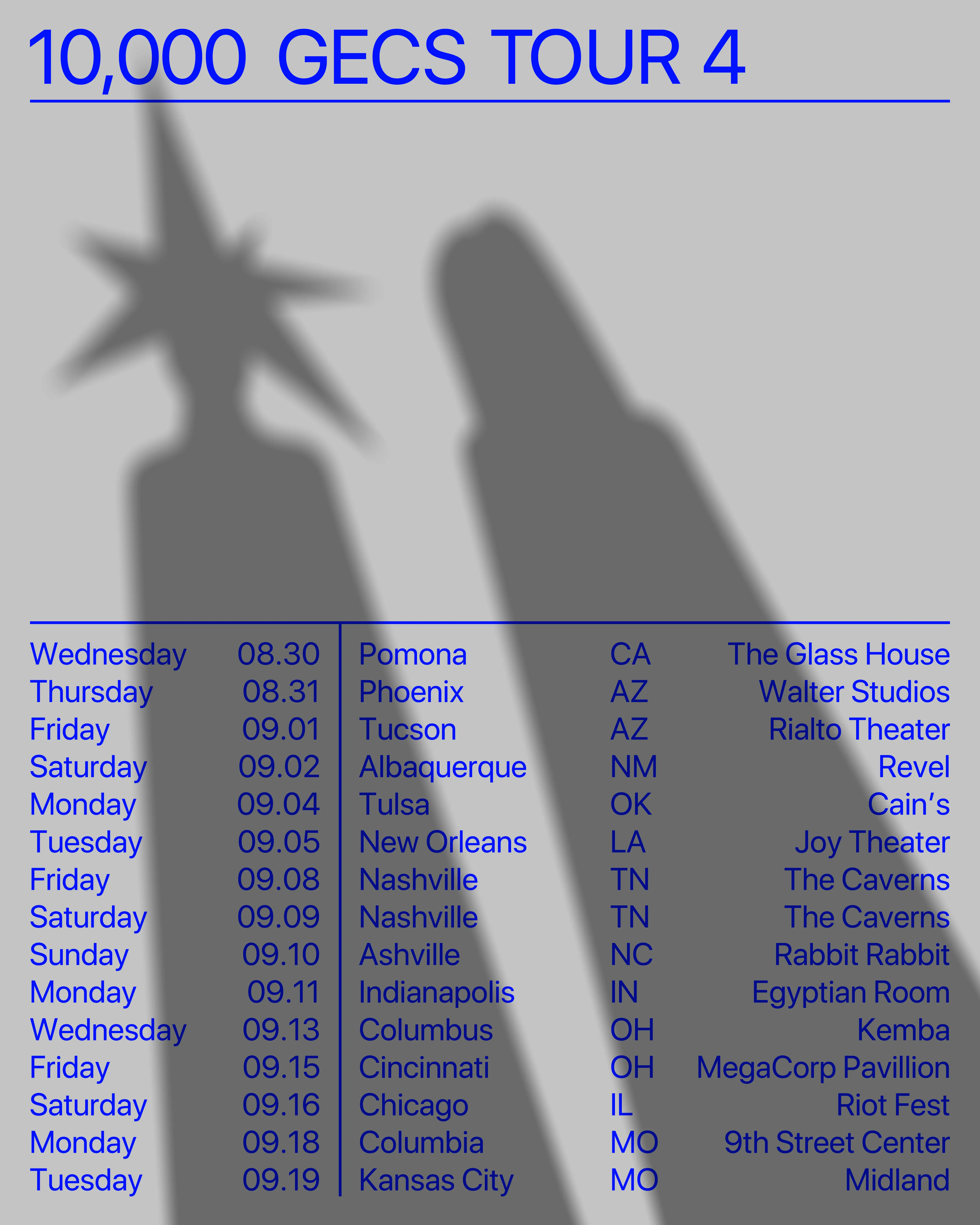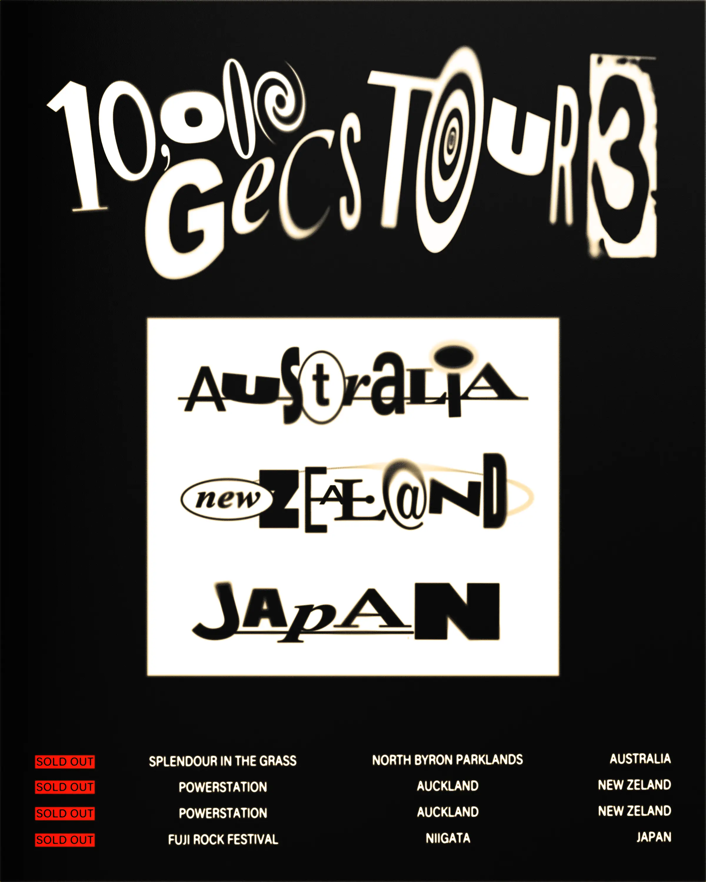 Tour posters for 100 Gecs' 2023 tours. Commissioned by Atlantic Records.